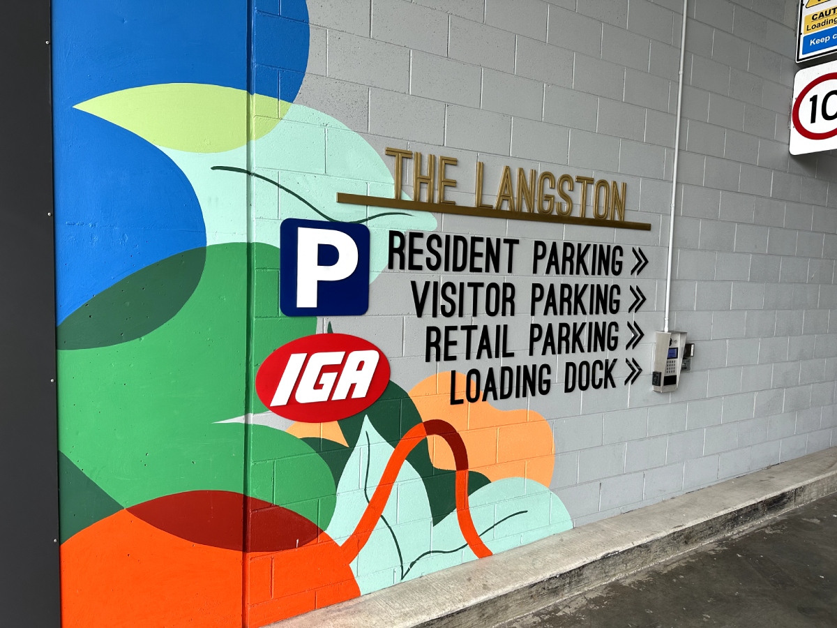 Mural Art was installed by Studio Dennis at The Langston, Epping. Working with their sister business ABW Display to install a mixed media direction signage for this urban shopping centre client.